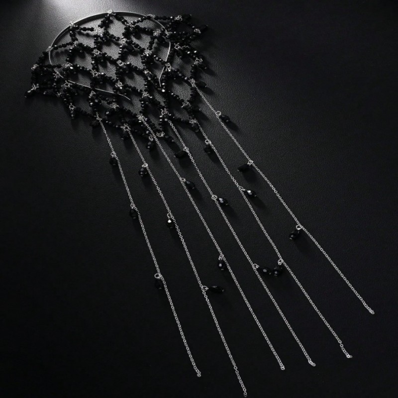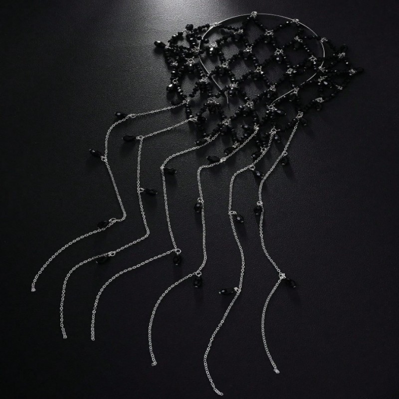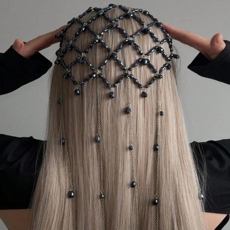 1 pieza Diadema de malla con perla negra estilo vintage, accesorio de pelo elegante y de moda