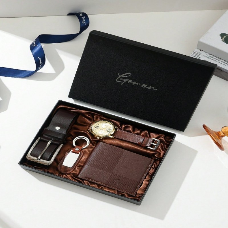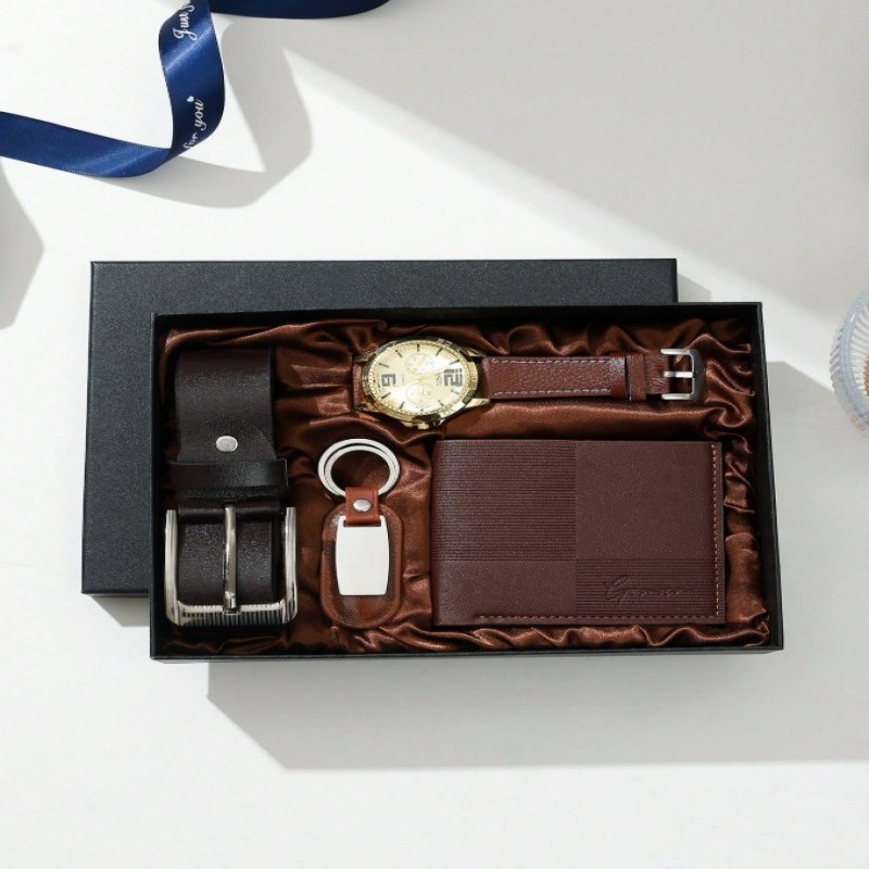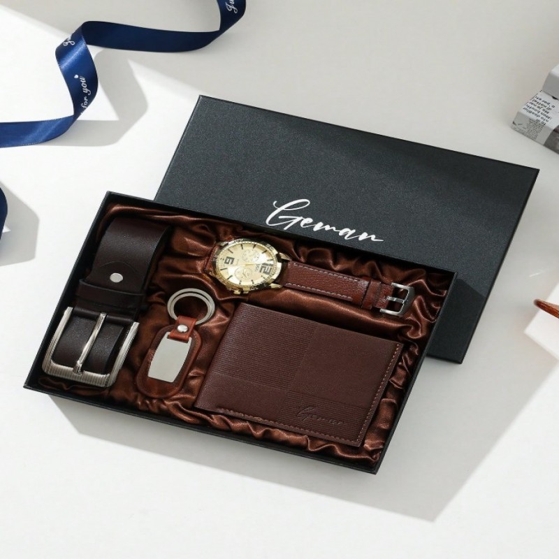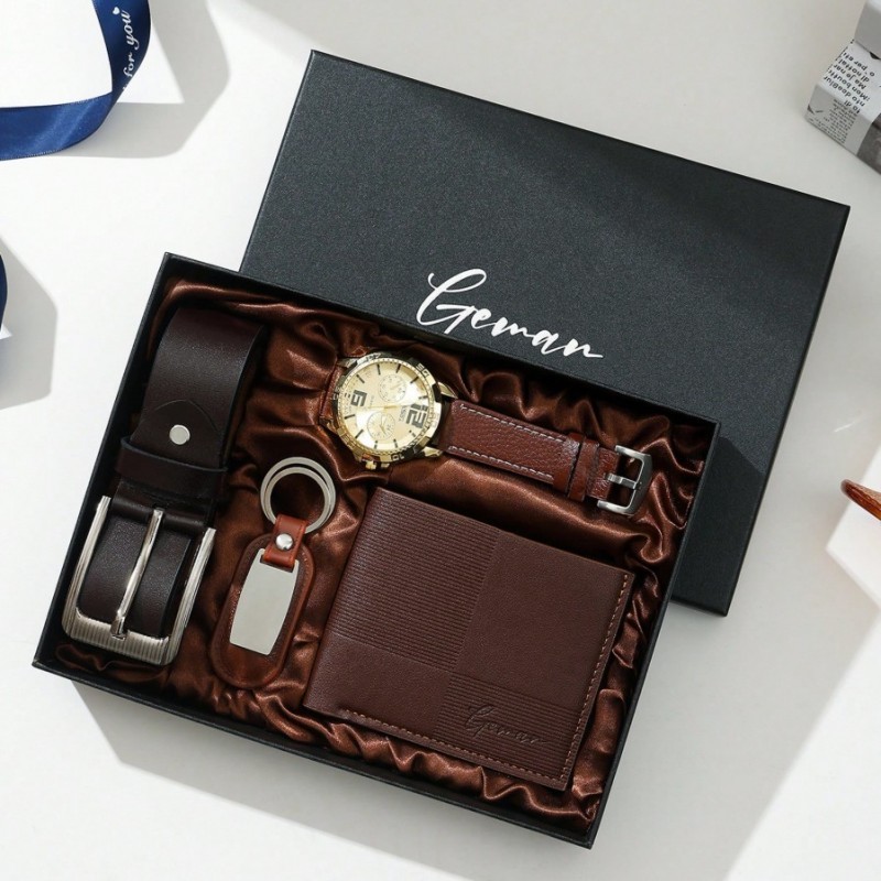 Set de regalo de reloj para hombres, ideal para el Día del Padre, regalos para papá, incluye cinturón de cuero casual, billetera, gafas de sol, excelente para novio, esposo, aniversario, Día del Maestro, regalos de graduación