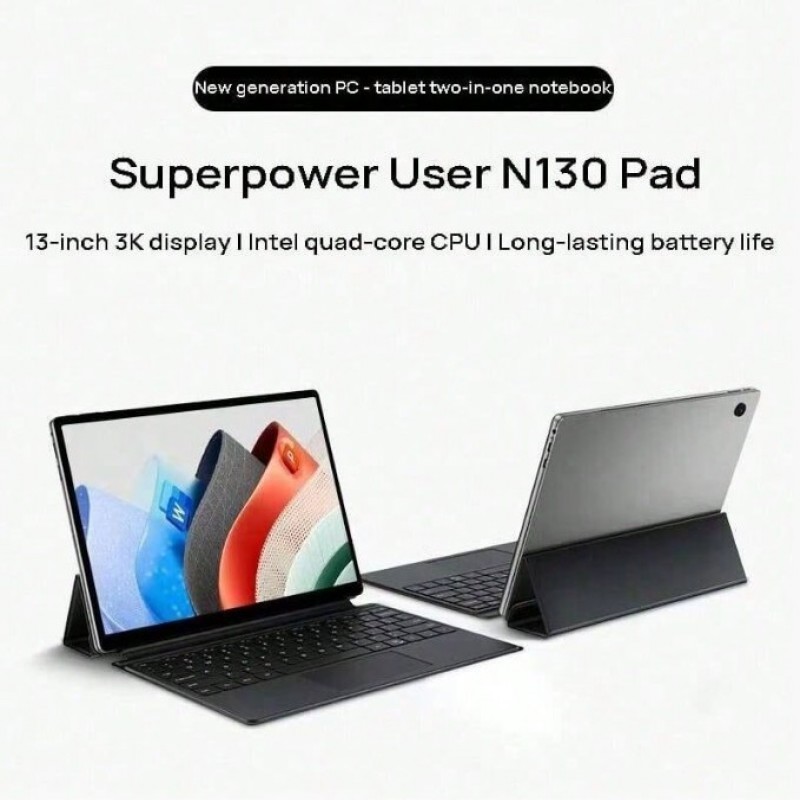 Lenovo Tableta 2 en 1 N130, pantalla táctil Full HD de 13 pulgadas, procesador Intel serie N, eficiencia energética, conmutable entre portátil, tableta y soporte, color plateado
