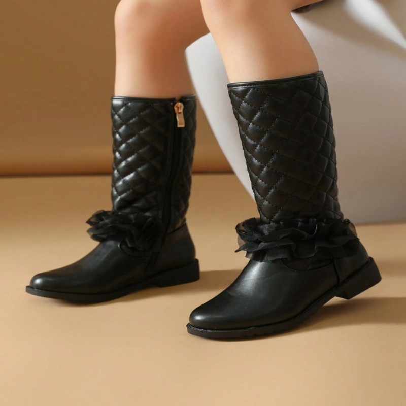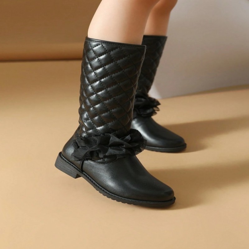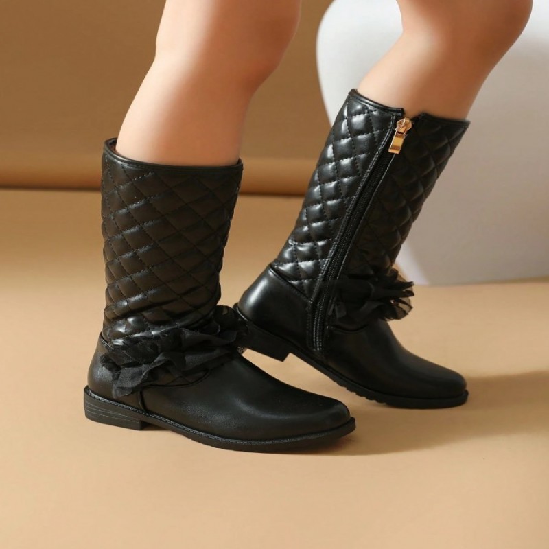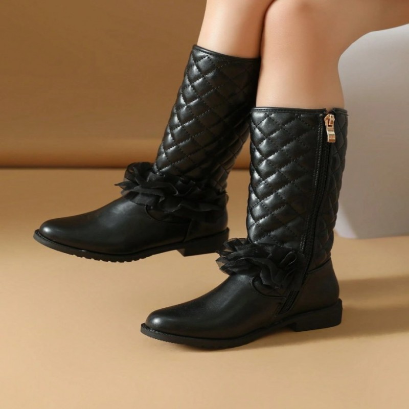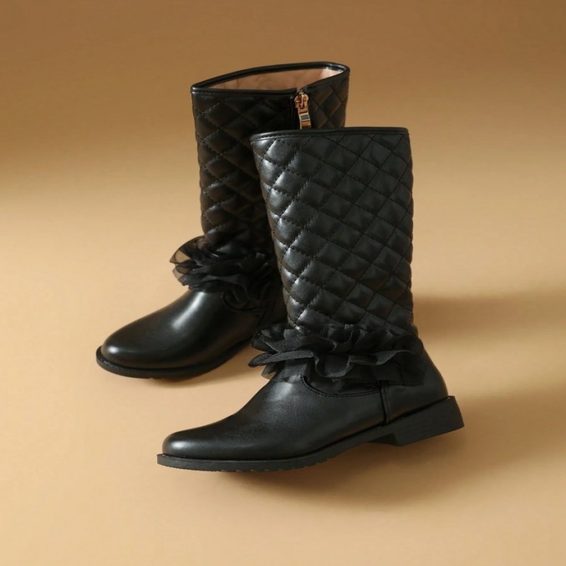 Botas negras para niñas, zapatos para niñas, botas promocionales para niñas, botas de tacón plano, zapatos para niñas, botas de invierno