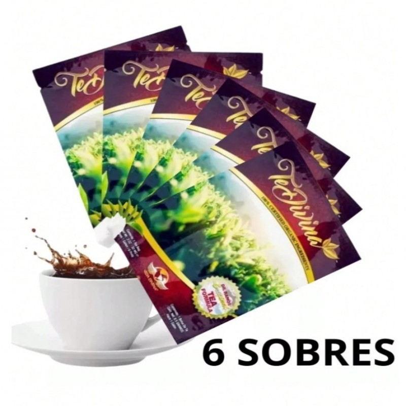 Té Divina Té detox herbal natural 4 sobres para más 2 de regalo, tratamiento completo de 6 semanas, con ingredientes vegetales, ideal para limpieza digestiva, bienestar intestinal y apoyo al control de peso, sobre individual práctico para uso diario o via