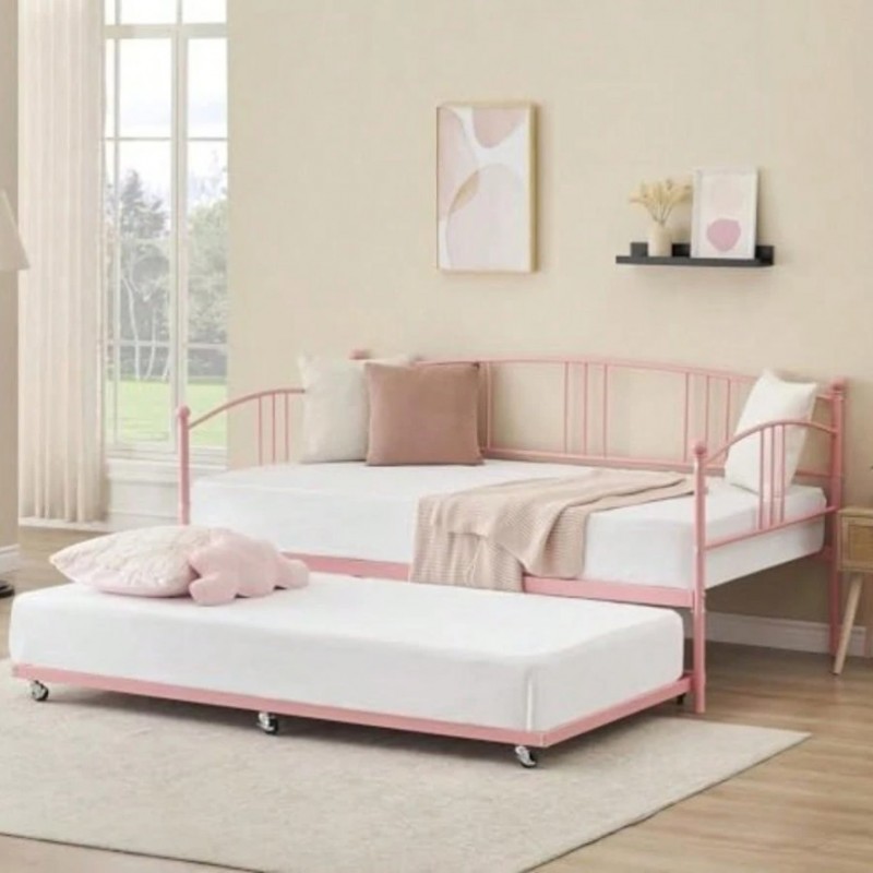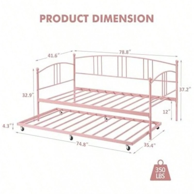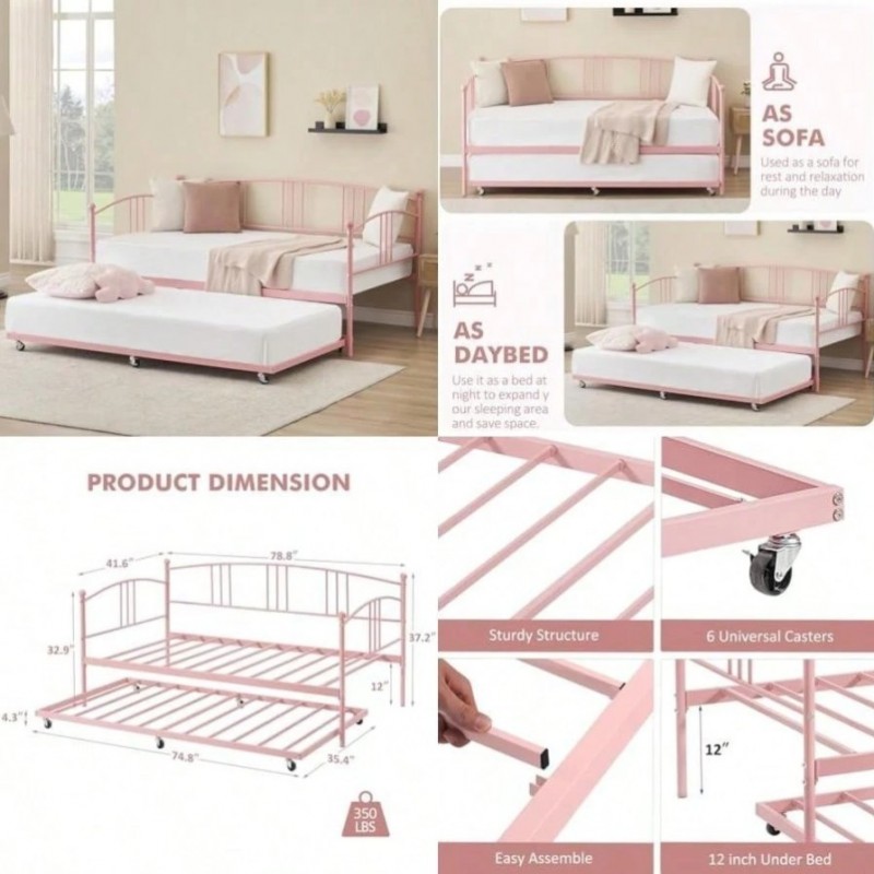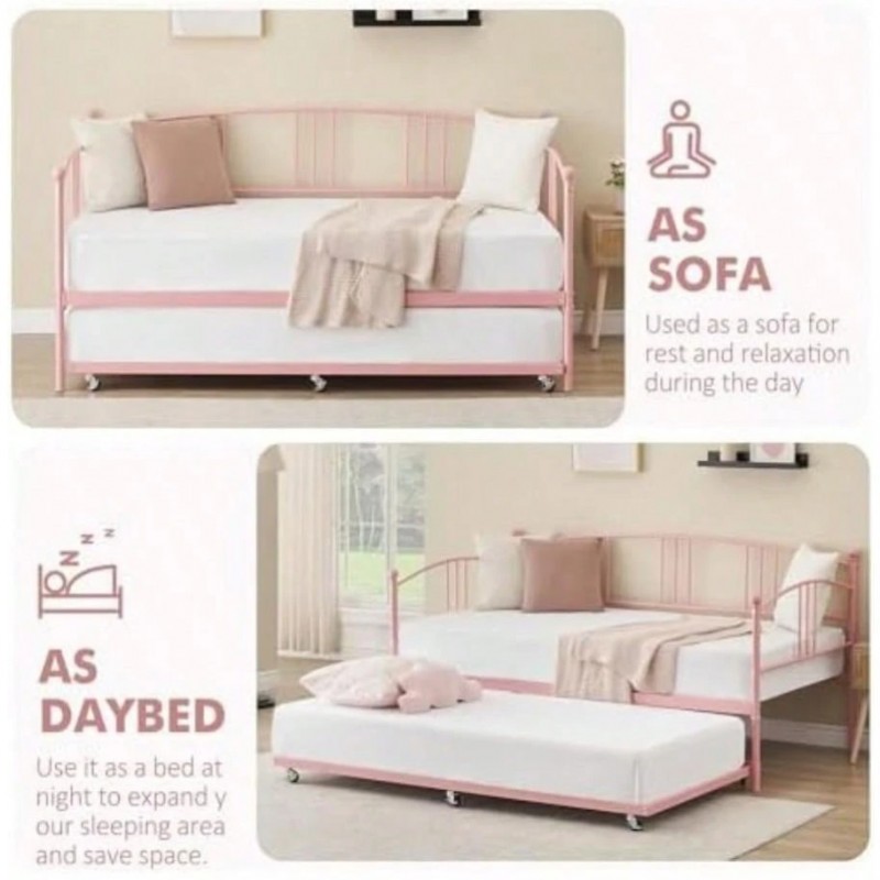 - Sofá Cama con rodar, tamaño de Metal con rodar extraíble de 6 Ruedas, sofá Cama con Listones de Acero para Sala de Estar, recámara, habitación de Invitados (Negro(Individual Rosado)