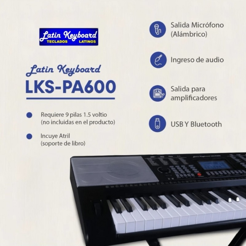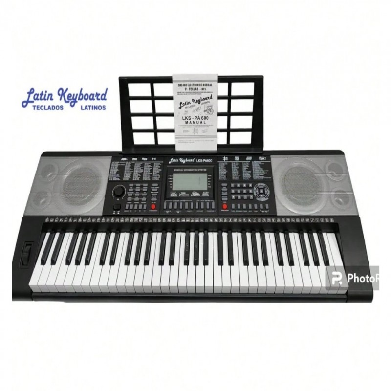 Teclado Musical profesional con 61 teclas Órgano electrónico, piano eléctrico, construido con el disco USB y Micro SD reproductor de MP3, Bluetooth incorporado para conexiones inalámbricas. Funciones Dual- voz y función doble teclado. 128 Tonos 128 Ritmos