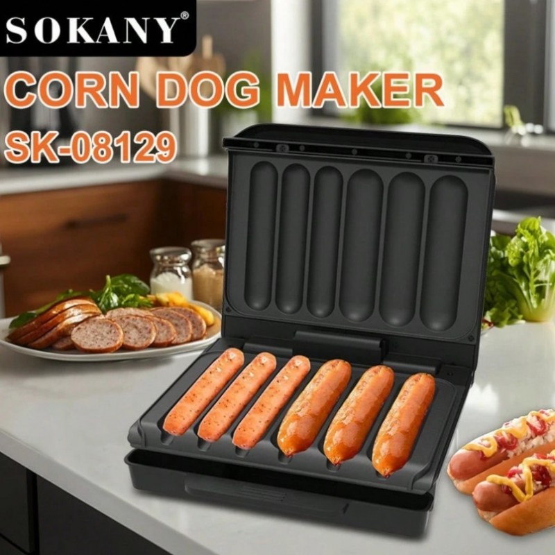 SOKANY Máquina eléctrica para hot dogs y asa para salchichas con bandeja de goteo de aceite y almacenamiento de cables, adecuada para salsas vegetarianas, barbacoas o chocolatinas. Tablero antiadherente y fácil de limpiar
