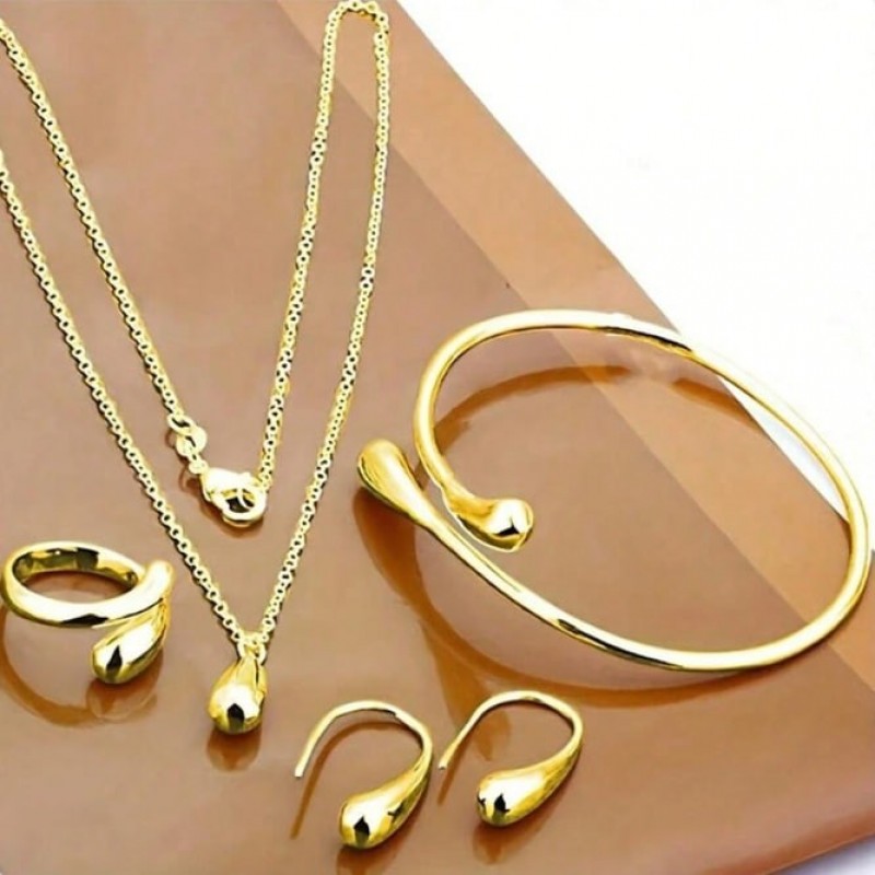 Juego de joyería de 5 piezas de gota de agua elegante - Collar, pulsera, aretes y anillo de aleación - Multifuncional y ajustable, adecuado para uso diario o para eventos de moda
